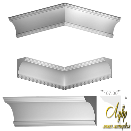Параметры Ширина по потолку 107 мм. Высота по стене 160 мм. Цена изделия 1000 р. Обращаем ваше внимание , что цена указана за 1м.п Категория Тяги Вперёд Назад